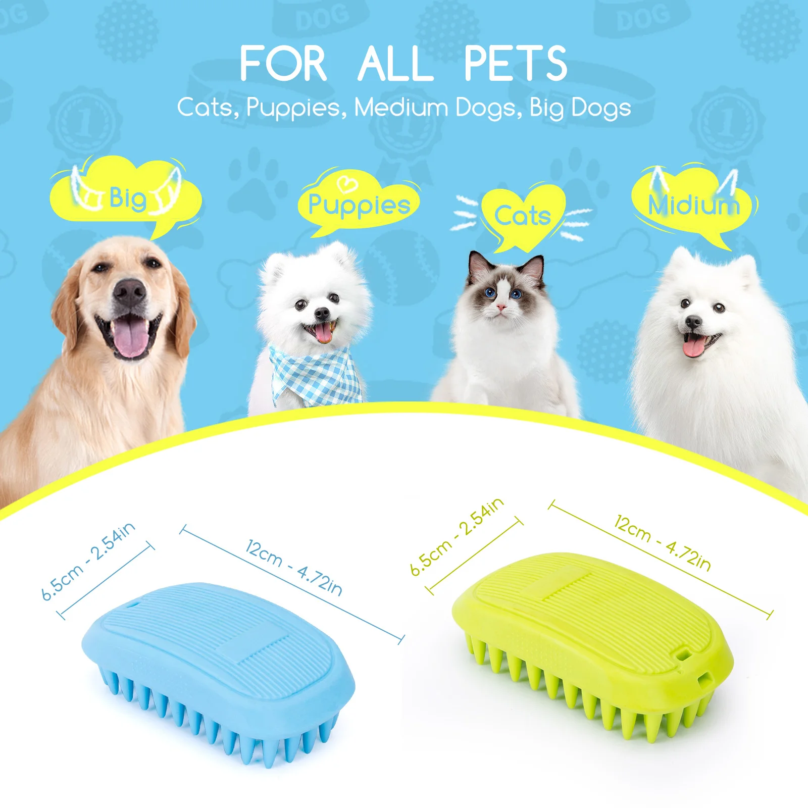 Sirve para limpiar el pelaje durante el baño, eliminar pelo suelto y proporcionar un masaje suave que mejora la experiencia de higiene.