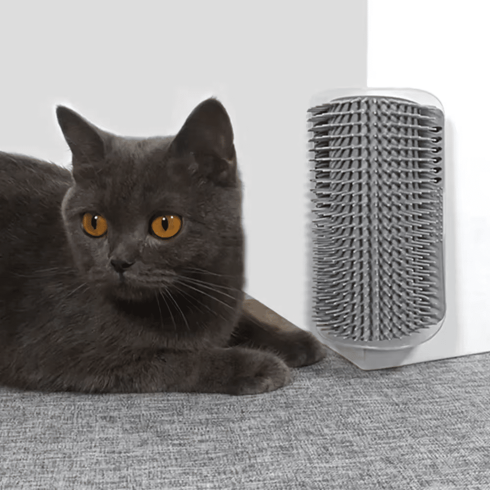 - Coloca el cepillo en una esquina o pared a la altura del gato.
