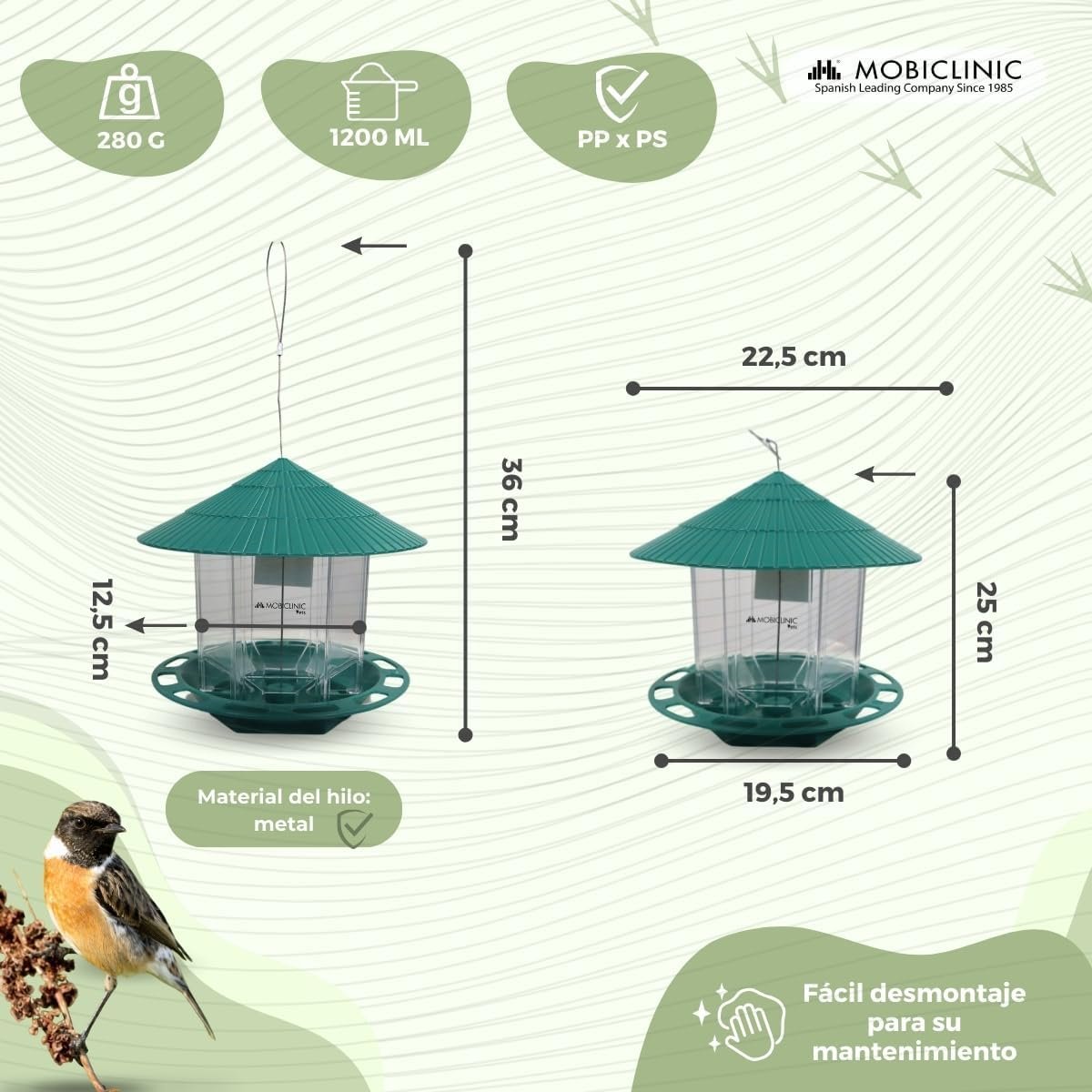 TABLA TÉCNICA DEL COMEDERO COLGANTE MOBICLINIC PARA PÁJAROS