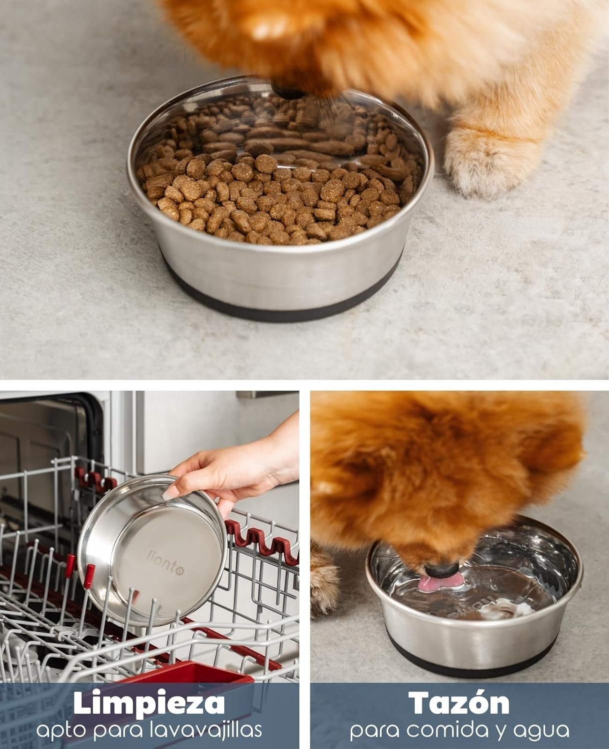 El acero inoxidable no retiene olores ni sabores y resulta fácil de limpiar, ayudando a mantener una correcta higiene en cada comida. Su base de silicona antideslizante evita que el cuenco se desplace durante el uso, reduciendo derrames y ruidos, algo especialmente útil en perros y gatos inquietos.