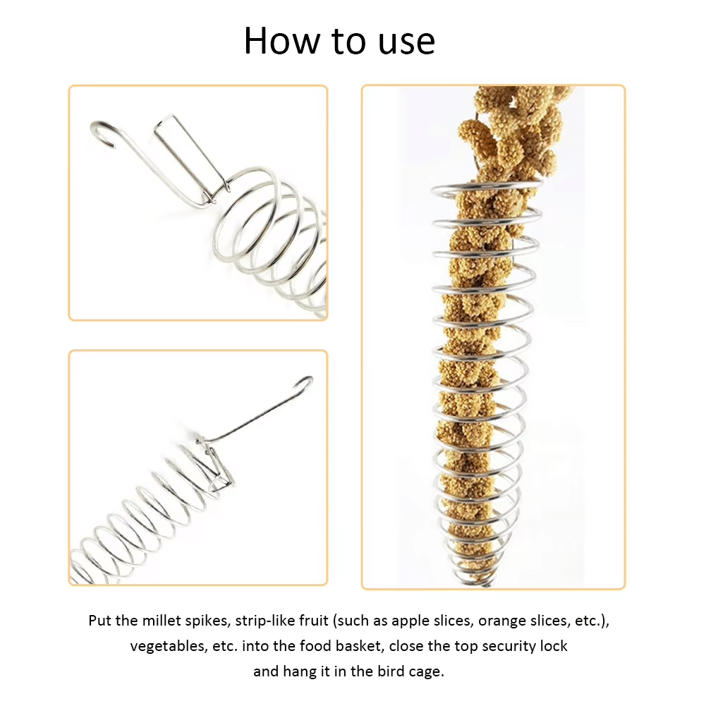 El alimentador de frutas y verduras de acero inoxidable para aves está diseñado para mejorar la alimentación y el entretenimiento diario de tu pájaro. Su cesta metálica mantiene los alimentos frescos y accesibles, mientras que la percha integrada permite al ave picotear de forma natural y cómoda. Fabricado en acero inoxidable, garantiza higiene, durabilidad y resistencia al picoteo continuo. Es ideal para loros pequeños, periquitos, ninfas y otras aves que requieren estímulos y comida variada para mantenerse sanas. Una herramienta práctica y segura que mejora la calidad de vida dentro de la jaula.