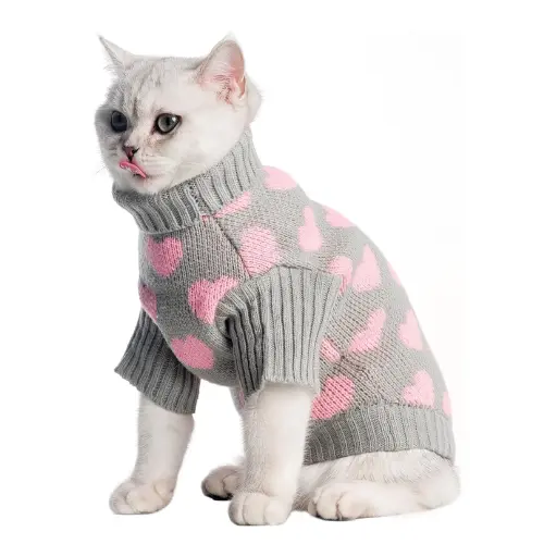 Los gatos, especialmente en épocas de frío, pueden necesitar un extra de abrigo para mantenerse cómodos y relajados. Este jersey de punto para gatos con cuello alto está diseñado para ofrecer calor, suavidad y libertad de movimiento, sin generar molestias ni rigidez.