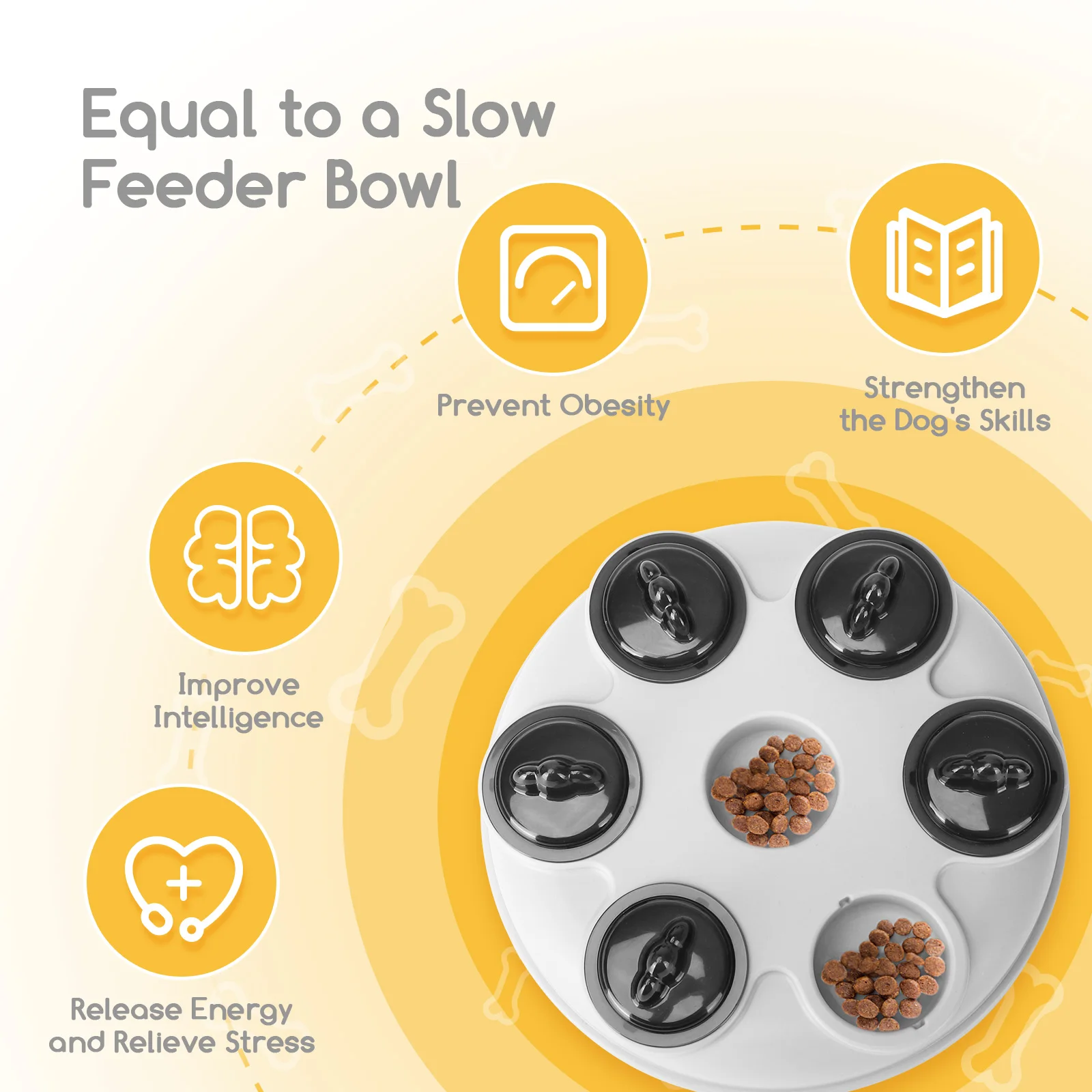 Funciona como dispensador de premios, motivando al perro a manipular el juguete para obtener la recompensa. Este proceso estimula la mente, mejora la concentración y ayuda a reducir comportamientos asociados al aburrimiento, como la ansiedad o la destrucción de objetos.