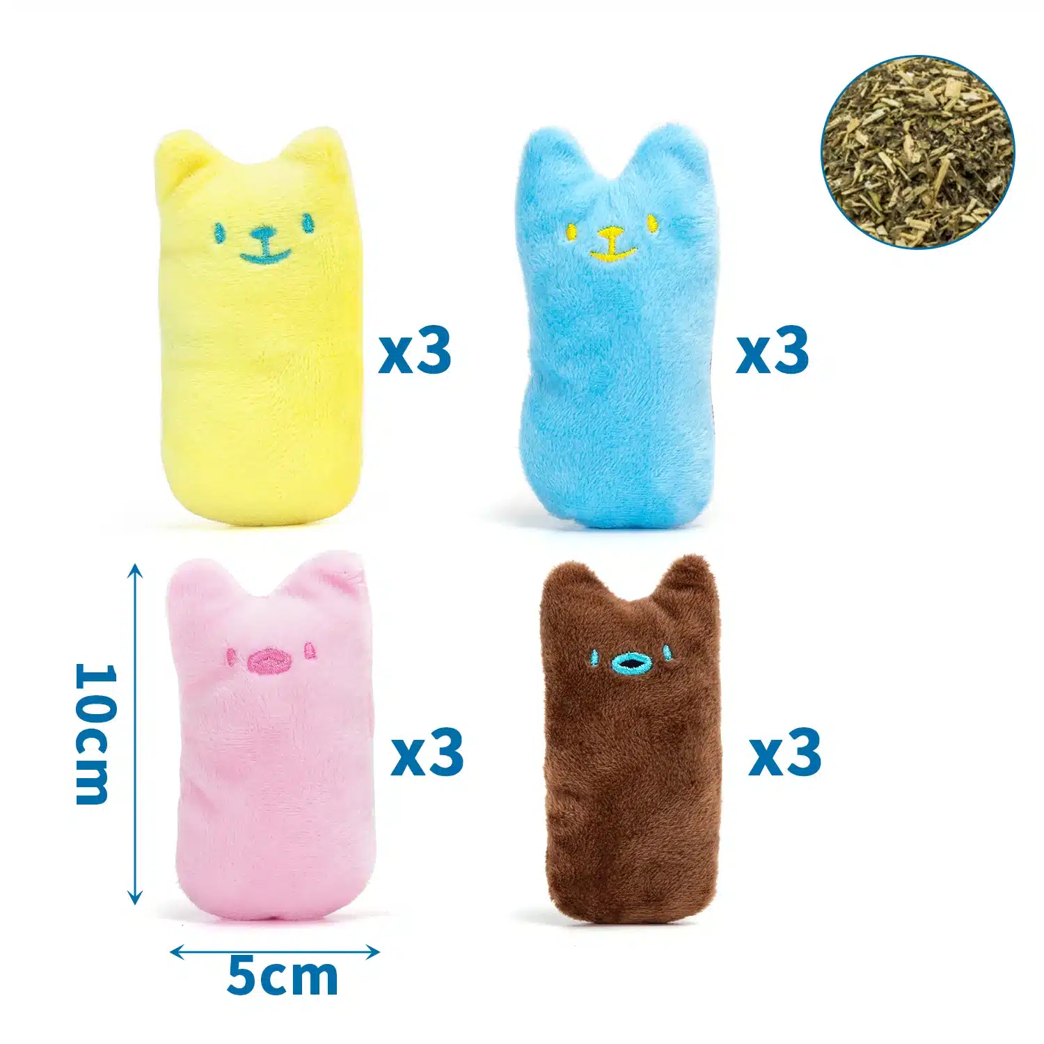 El Juguete para gatos con catnip Nobleza un pack de 4 juguetes para gatos fabricados en algodón resistente y rellenos con catnip, pensados para estimular el instinto natural de juego, masticación y caza.