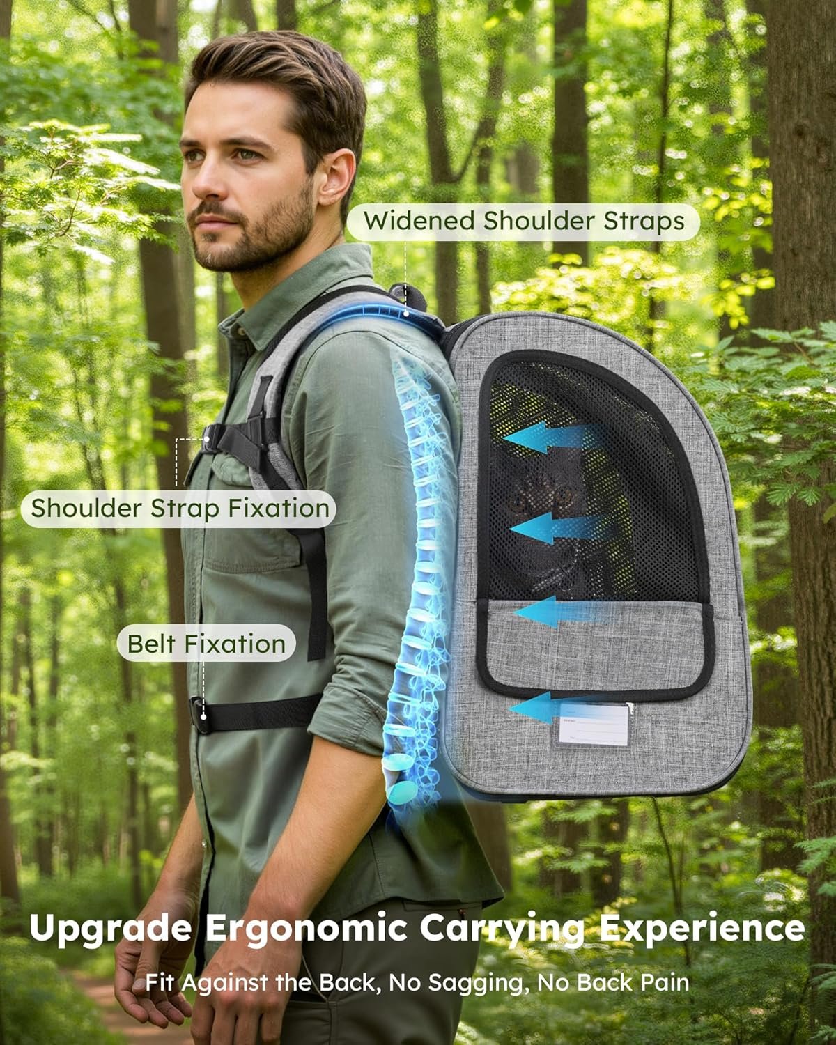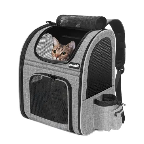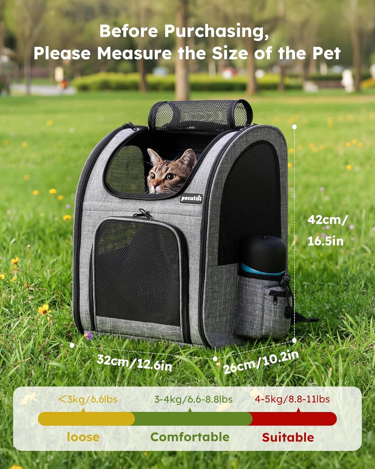La mochila transportín Pecute es una solución práctica y segura para transportar perros y gatos manteniendo una ventilación óptima y una estructura firme. Diseñada para llevarse a la espalda, reparte el peso de forma equilibrada y reduce el esfuerzo del tutor durante trayectos largos.