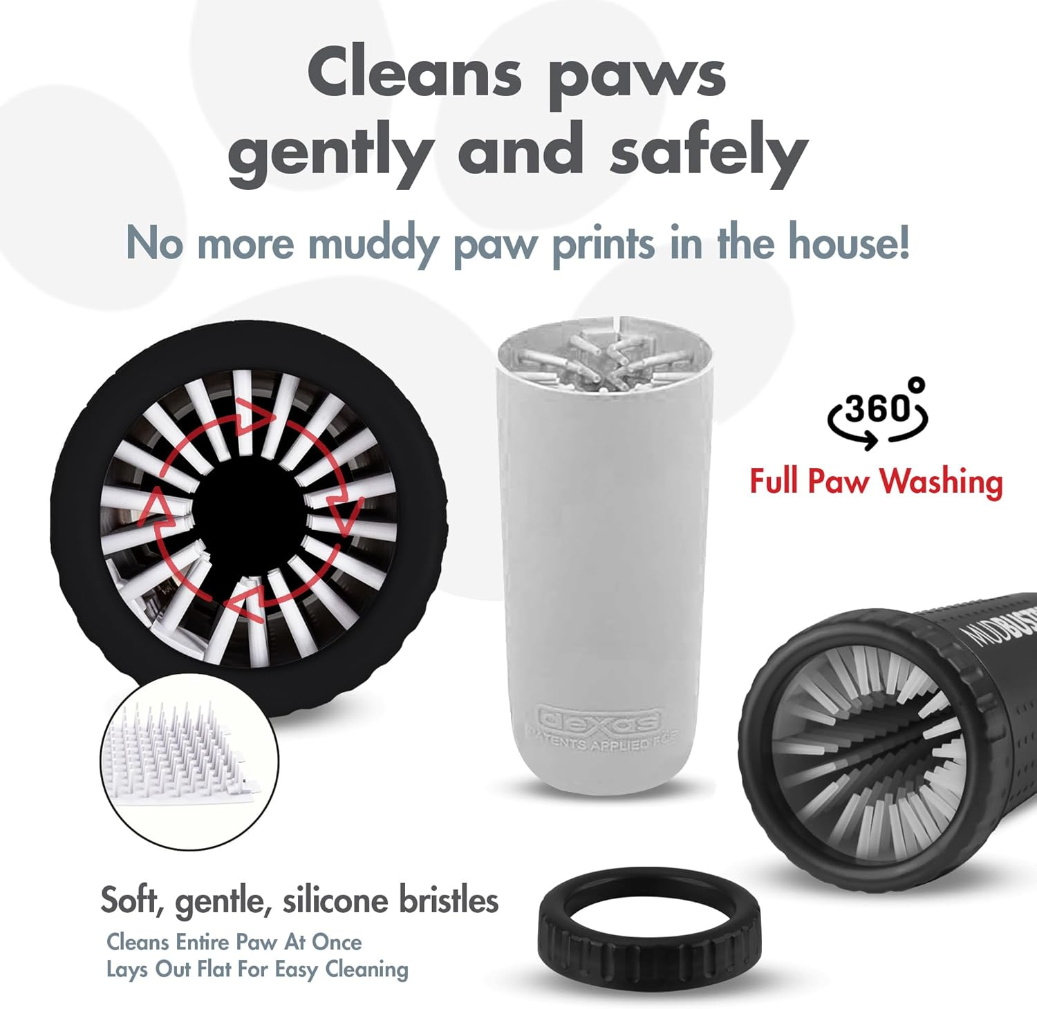 - Sin suciedad: las suaves cerdas de silicona ayudarán a eliminar la suciedad y el barro de las patas de tu perro, de forma que se queden en MudBuster y no en tu casa.