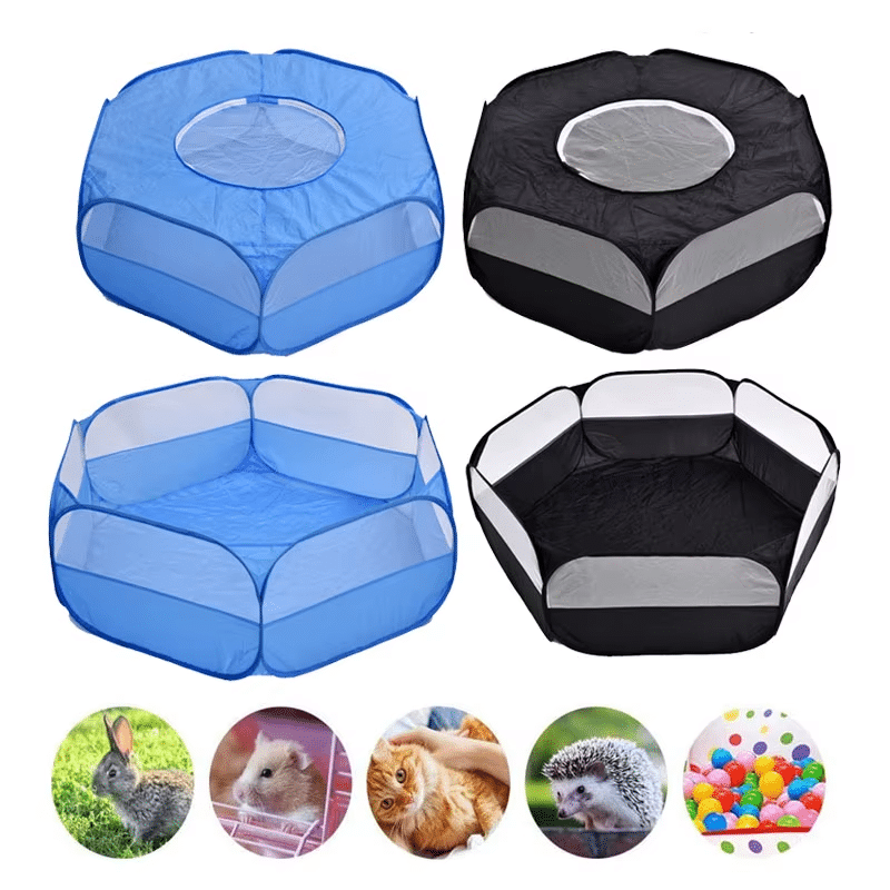 El parque plegable portátil para mascotas es un recinto seguro y práctico diseñado para ofrecer un espacio controlado tanto en interior como exterior. Su estructura ligera se despliega en segundos y crea un área amplia para que perros pequeños, conejos, hámsters, cobayas y otros animales puedan jugar, descansar o explorar sin riesgo. Los paneles de malla permiten ventilación constante y visibilidad total, evitando estrés y facilitando la supervisión. Ideal para jardines, camping, viajes o uso diario en casa, es fácil de limpiar, plegar y transportar. Una solución versátil para dueñas que buscan seguridad, comodidad y libertad de movimiento para sus mascotas.