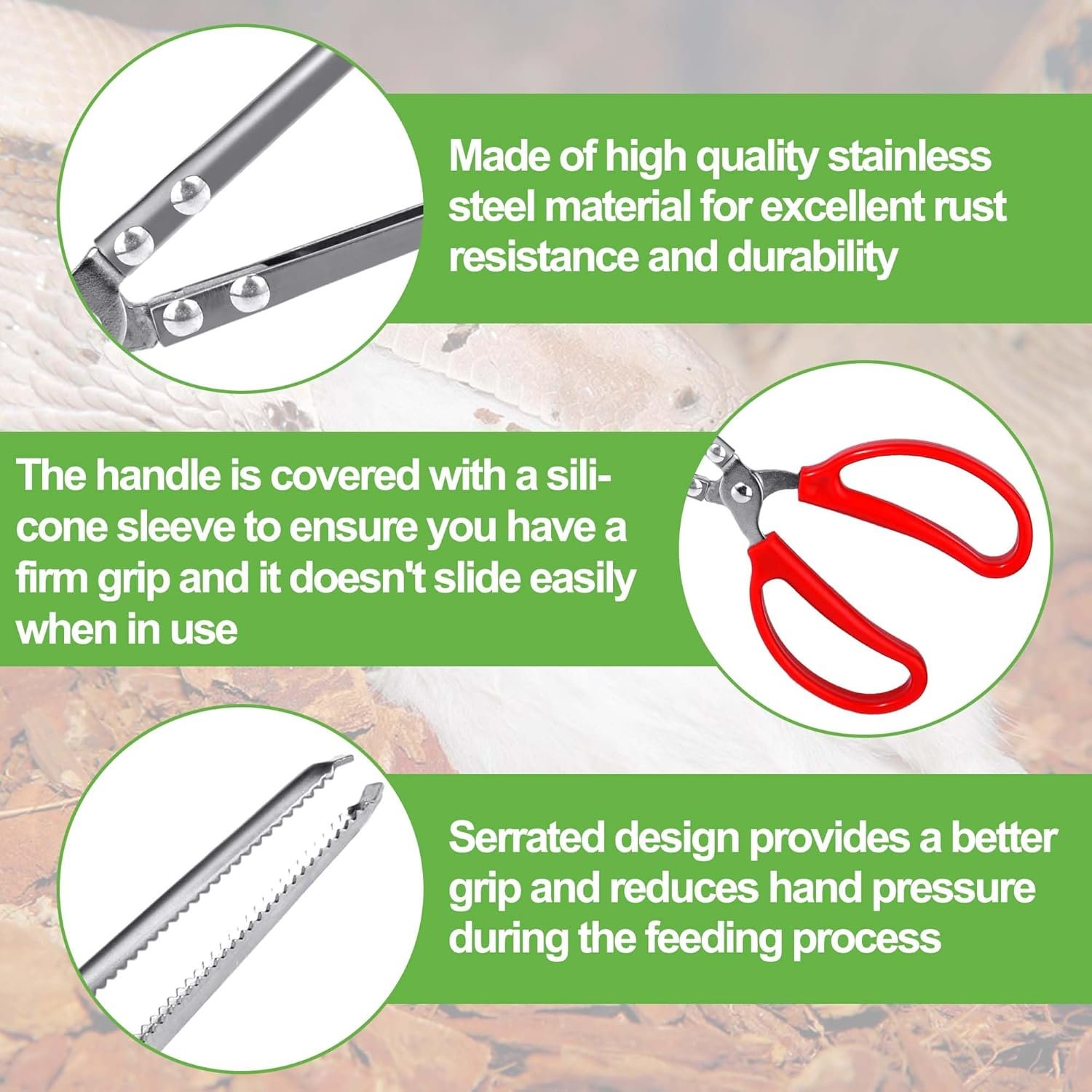 Facilita la alimentación de tus reptiles de forma segura y profesional.