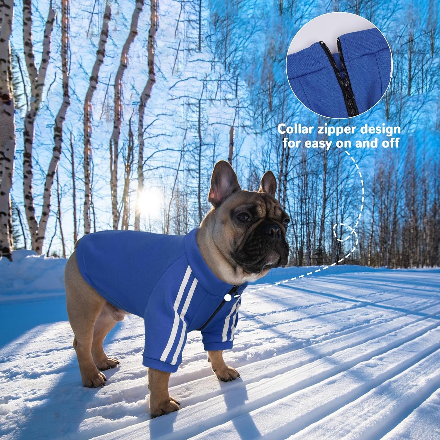 Muchos perros con cabeza ancha y pecho fuerte tienen dificultades con sudaderas que se colocan por la cabeza. Esta sudadera con cremallera para perros está diseñada específicamente para facilitar el vestido, aportando comodidad real y ajuste sencillo sin estrés para la mascota.
