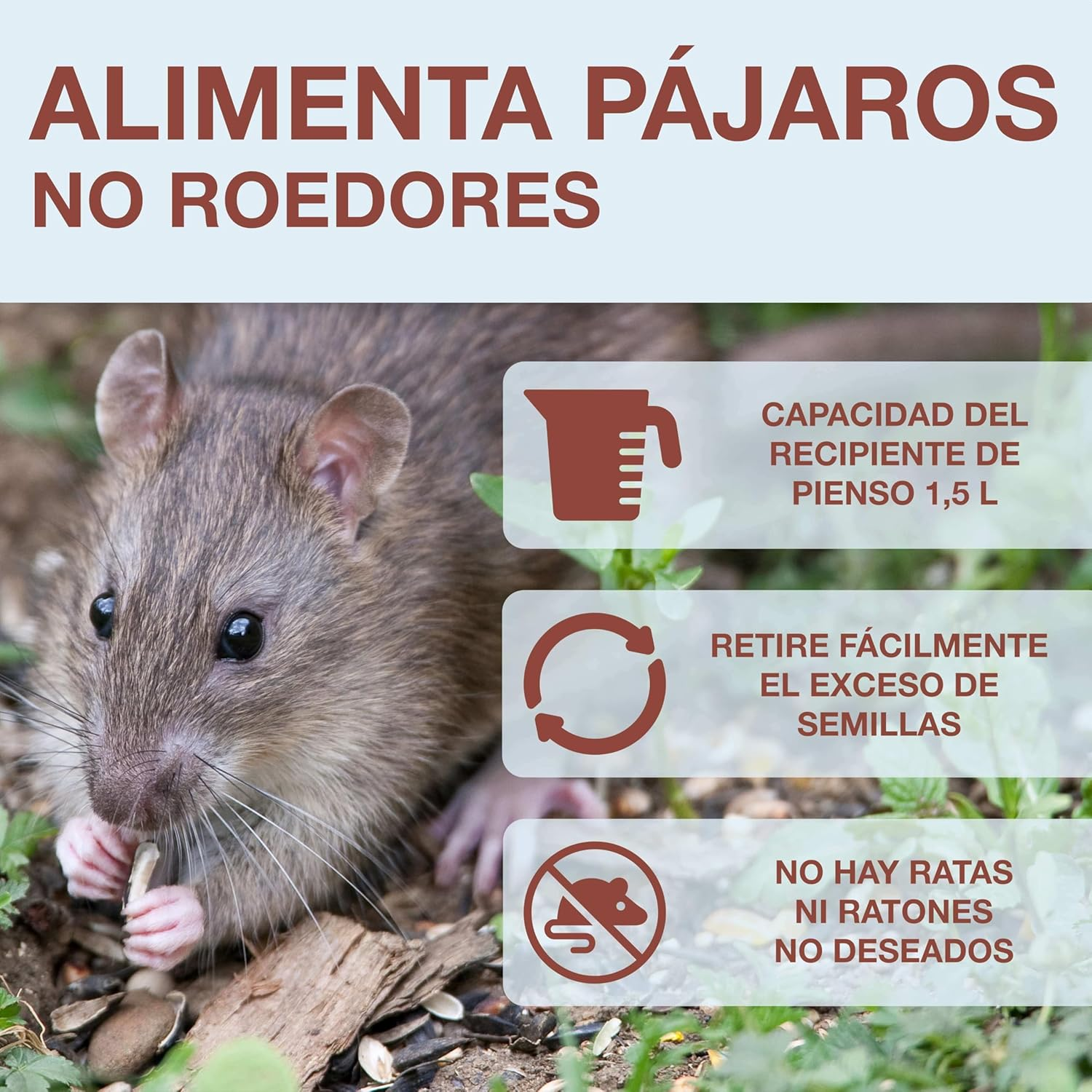 - 🐀 Comedero para Pájaros a Prueba de Ratones y Ratas: Diseño innovador que impide que los roedores accedan al alimento – alimente a las aves silvestres, no a ratas y ratones. Ideal para jardín y balcón.