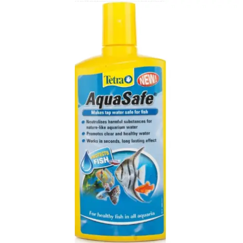 Tetra AquaSafe es un acondicionador de agua para acuarios de agua dulce que transforma el agua del grifo en un hábitat seguro y apto para peces en cuestión de segundos. Está diseñado para eliminar sustancias tóxicas habituales del agua corriente y minimizar el estrés que sufren los peces durante los cambios de agua. Su fórmula avanzada protege branquias y mucosas, mejora la calidad del agua y contribuye al bienestar general del acuario, aportando tranquilidad al cuidador y a sus peces.